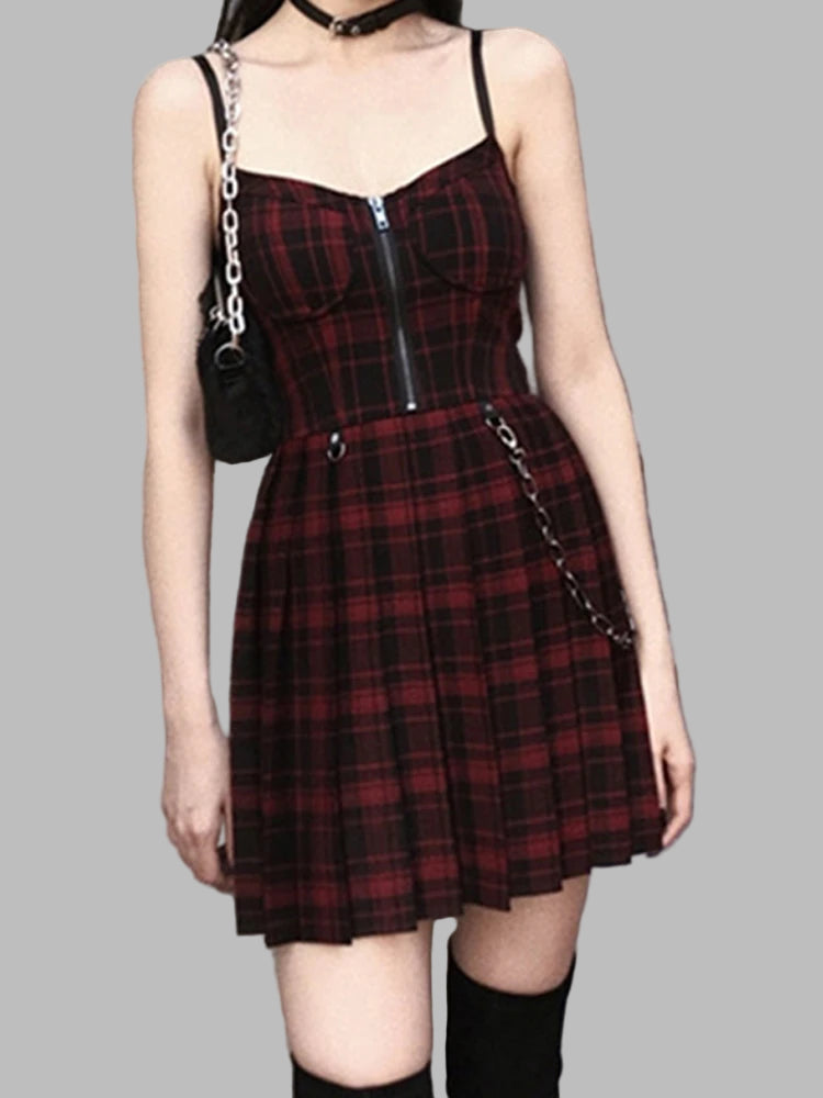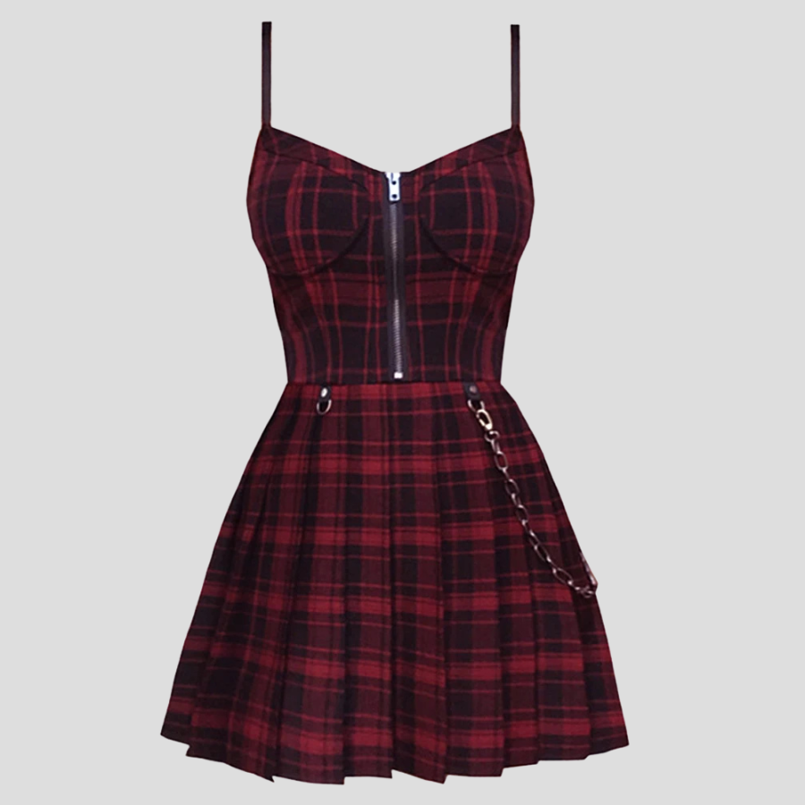 Grunge punk ruha bordó kockás lánccal Lehetosegek megtekintese