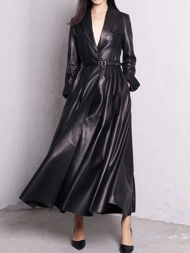 Długi Płaszcz Metal Goth Rock ze Skóry Czarny Elegancki