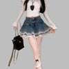 Jirai Kei fehér csipkés fodros farmer szoknya