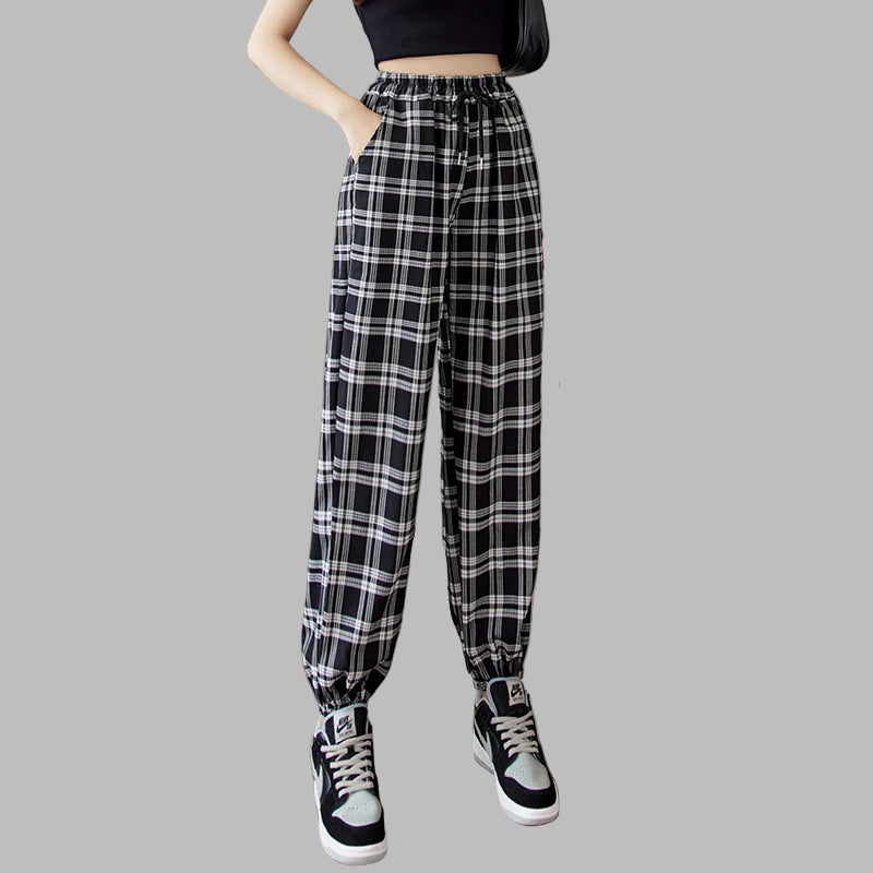 Jirai Kei fekete-fehér kockás jogger nadrág Lehetosegek megtekintese