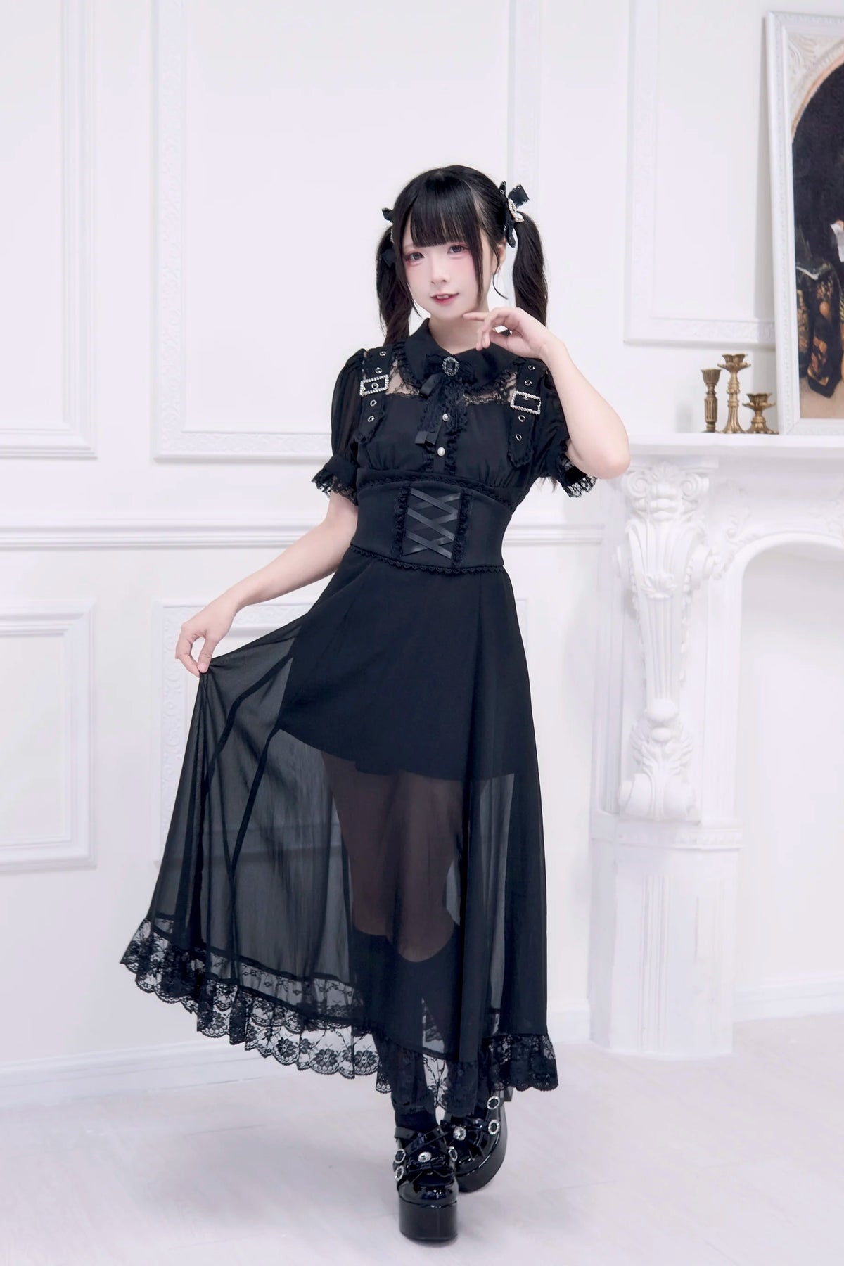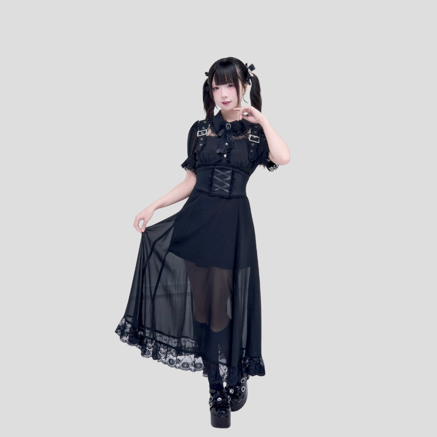 Jirai Kei Fűzős Ruha Fekete Kawaii Hosszú