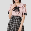 Jirai Kei rózsaszín blúz fekete masnival, rövid ujjú Lehetosegek megtekintese