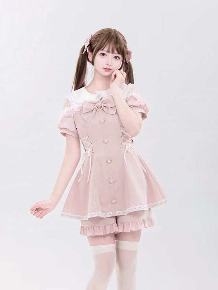 Jirai Kei rózsaszín masnis ruha oldalt fűzős Lehetosegek megtekintese