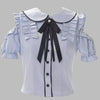 Jirai Kei Szürke Rövid Ujjú Masnis és Fodros Blúz