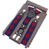Kék-piros kockás punk rock nadrágtartó bőr csipeszekkel