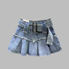 Kék punk farmer szoknya övvel és rakott részletekkel
