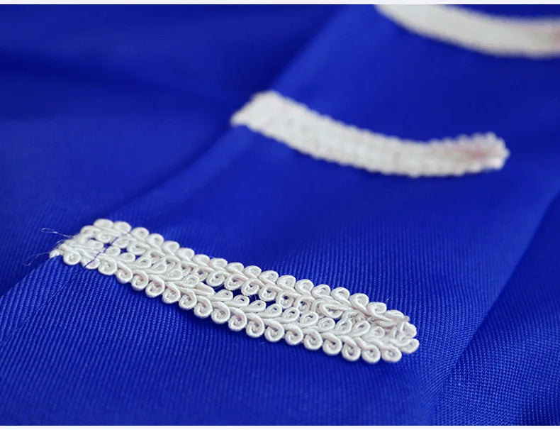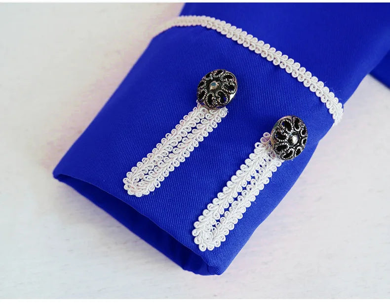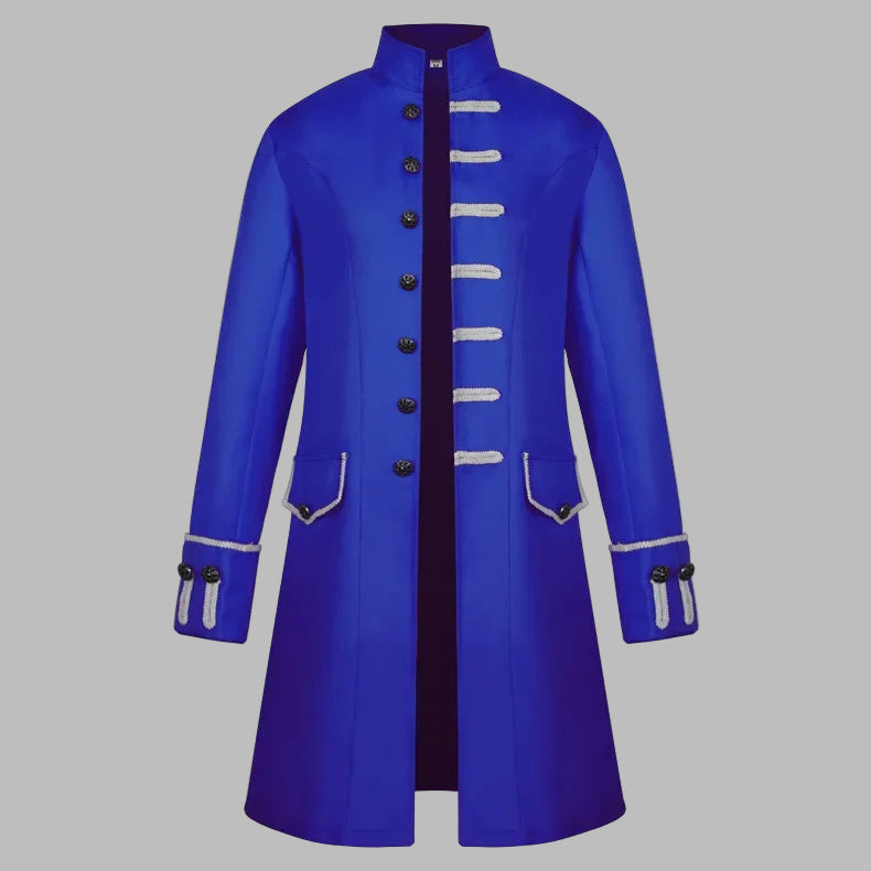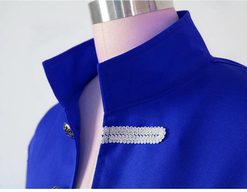 Kék Steampunk Kabát Fehér Díszítő Zsinórokkal Férfi