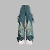 Kék szakadt punk farmer cargo zsebekkel nadrág