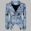 Kék újságmintás punk rock metal bőrdzseki Lehetosegek megtekintese