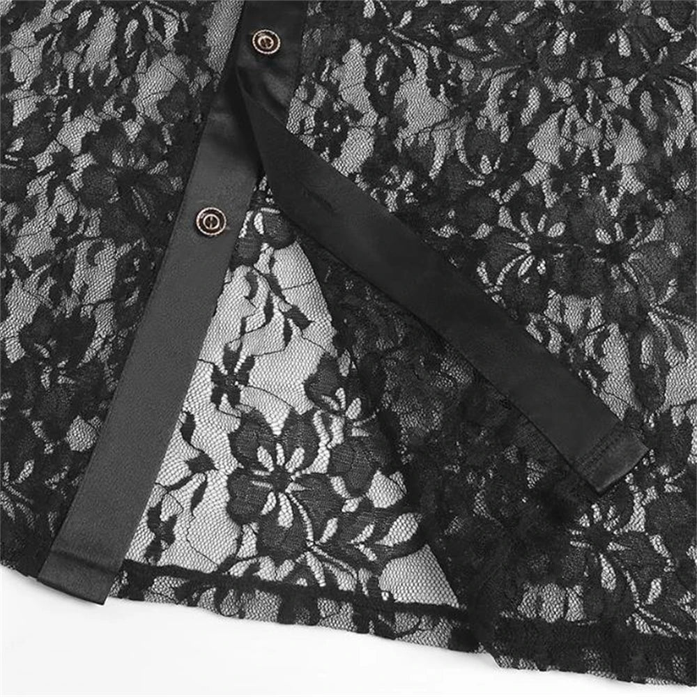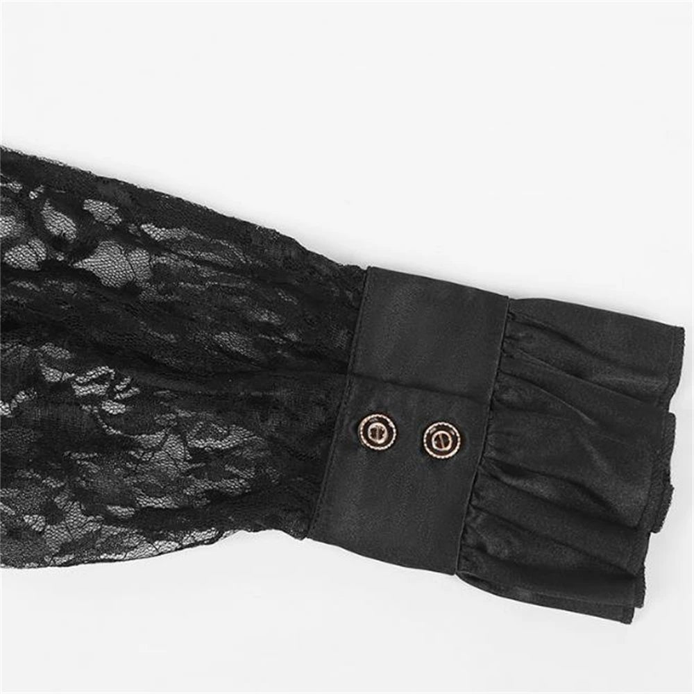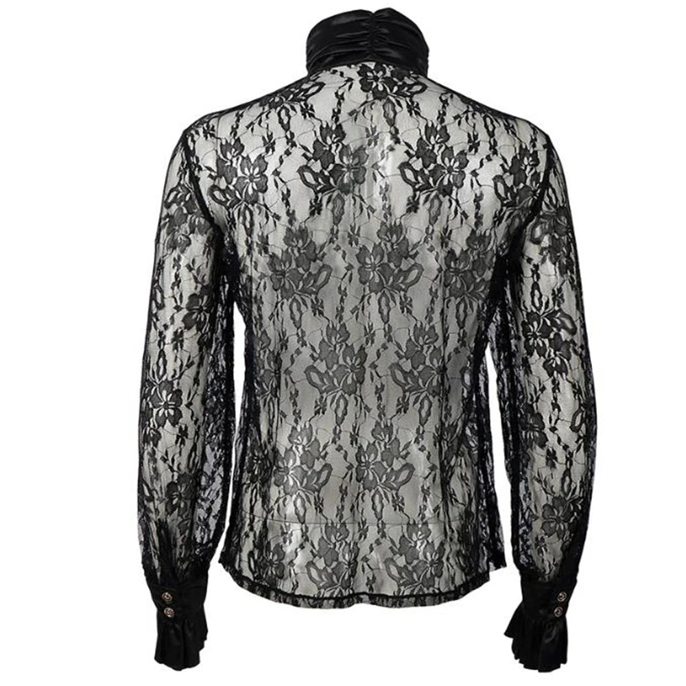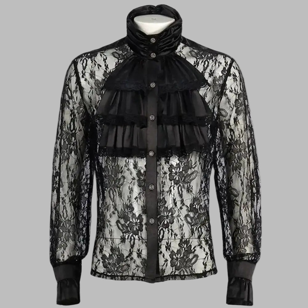 Koszula Gotycka Męska Czarna Koronkowa z Żabotem
