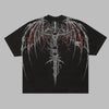 Koszulka Metal ze Skrzydłami Czaszki Czarna Death Metal Oversized