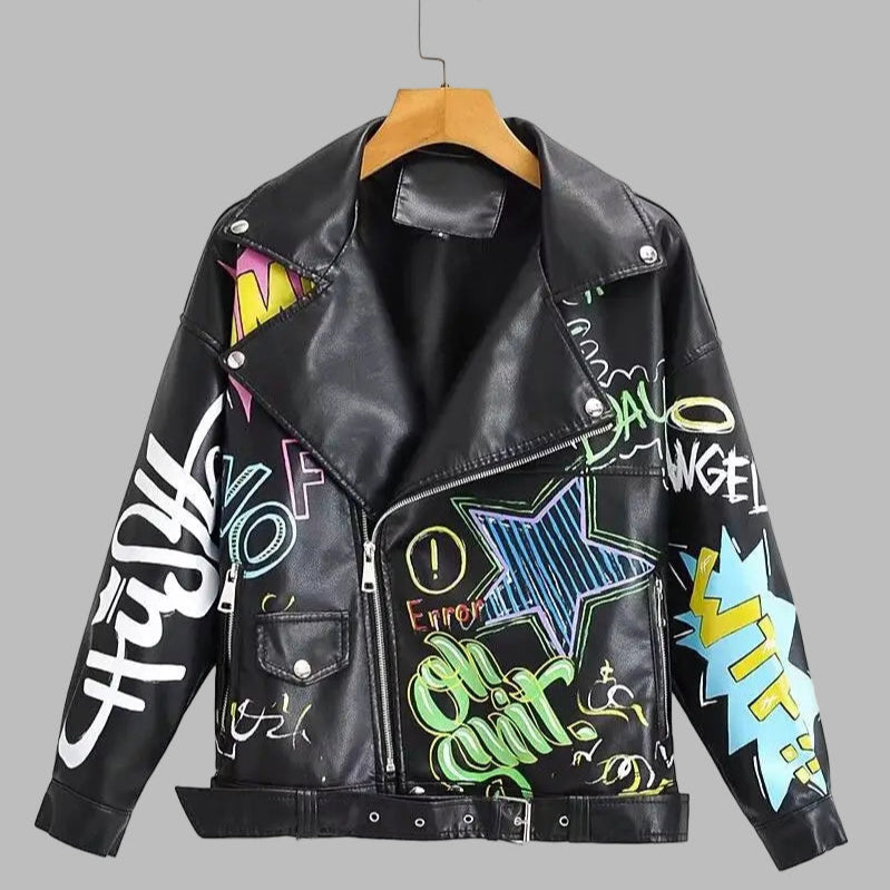 Kurtka Ramoneska Czarna Skórzana z Graffiti Punk Megtekintési beállítások