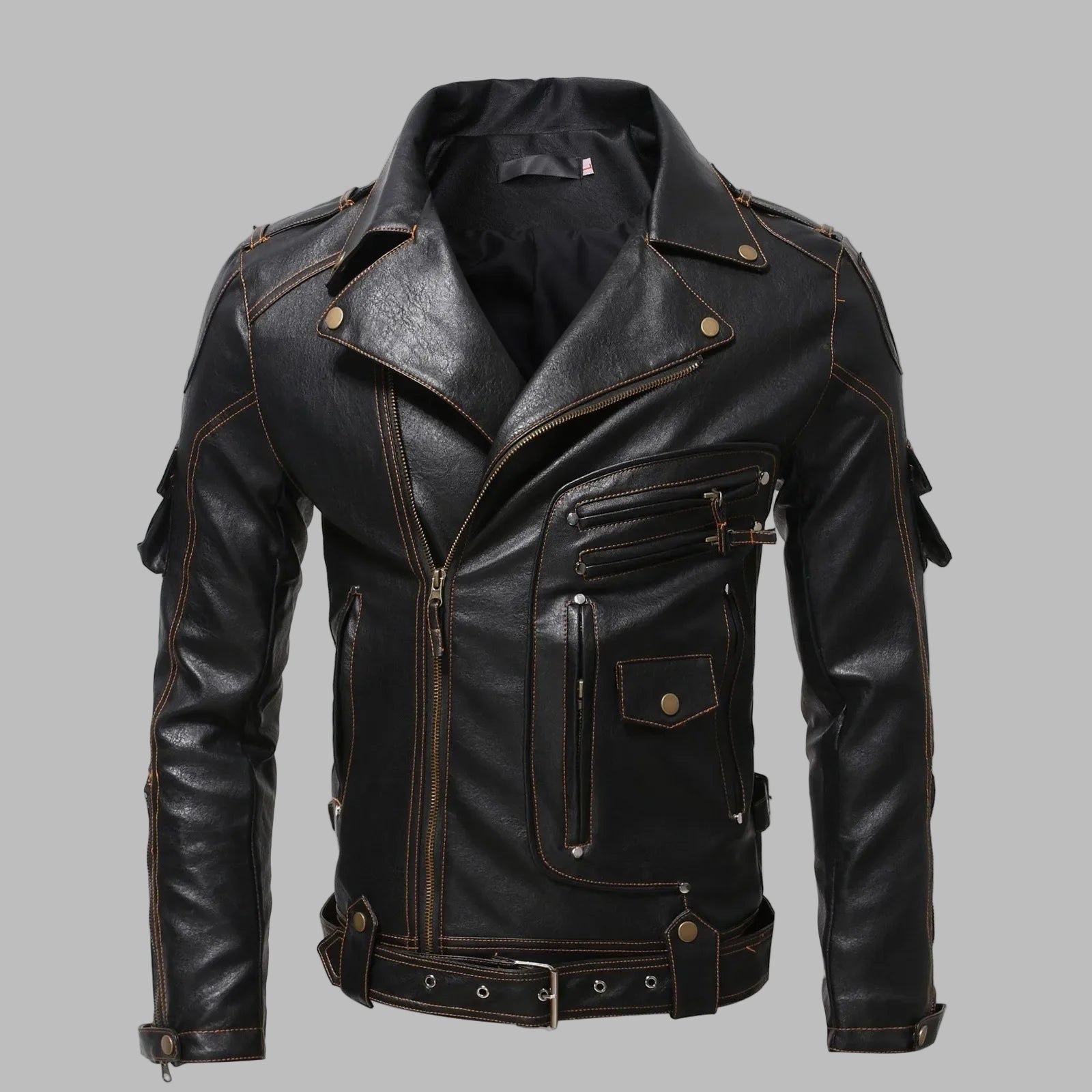 Kurtka Skórzana Goth Punk Czarna Męska Ćwieki Paski Motocyklowa