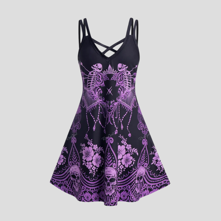 Lila punk rock ruha koponyákkal és gótikus díszítésekkel 5XL