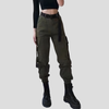 Militarne Spodnie Cargo Punk z Kieszeniami Khaki