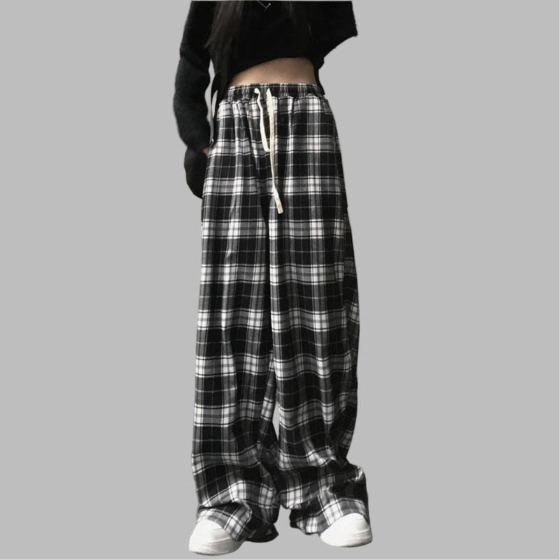 Női fekete-fehér kockás bő punk grunge nadrág