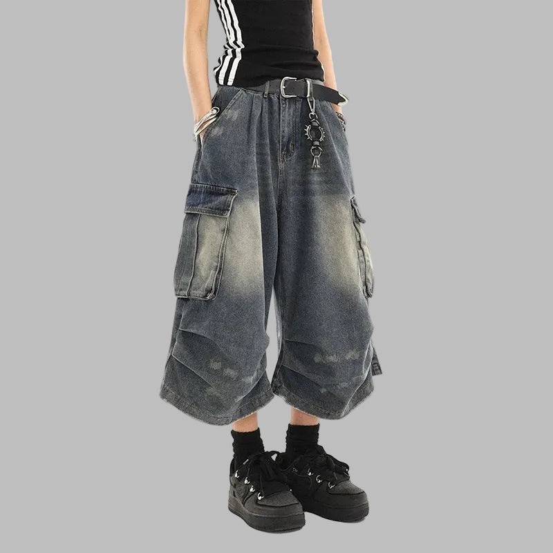 Női Grunge Széles Rövid Farmer Cargo Nadrág