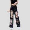 Női Széles Szaggatott Grunge Punk Farmernadrág