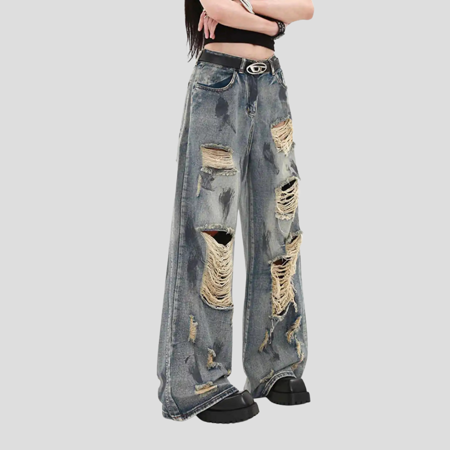 Női Széles Szaggatott Grunge Farmernadrág Lehetosegek megtekintese