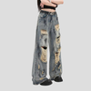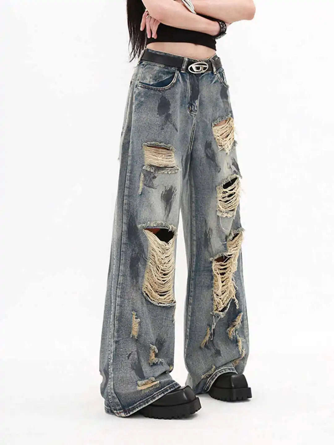 Spodnie Jeansowe Poszarpane Dziury Szerokie Damskie Grunge