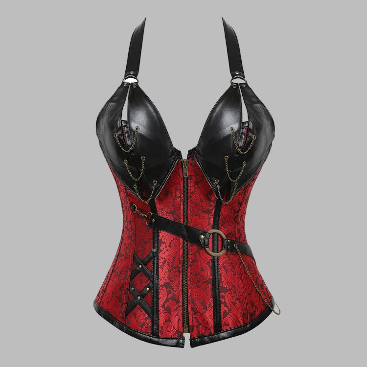 Piros punk fűző fekete bőrelemekkel 6XL