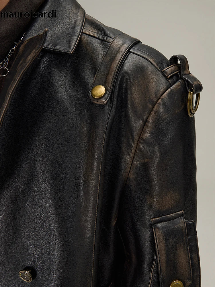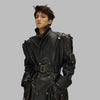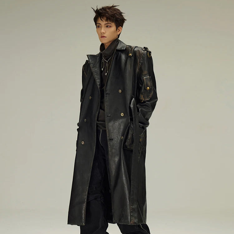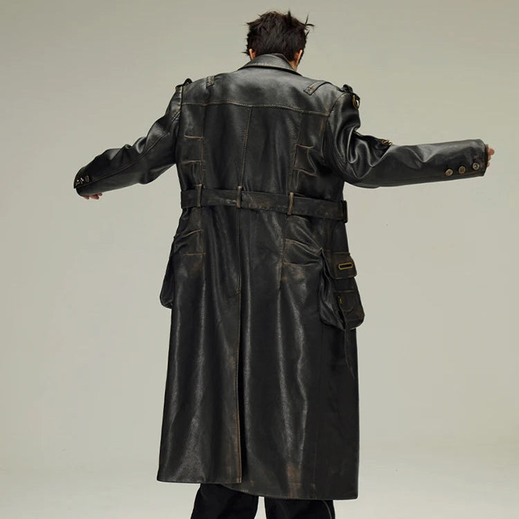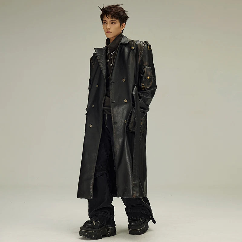 Płaszcz Skórzany Czarny Długi Gotycki Styl Alternatywny