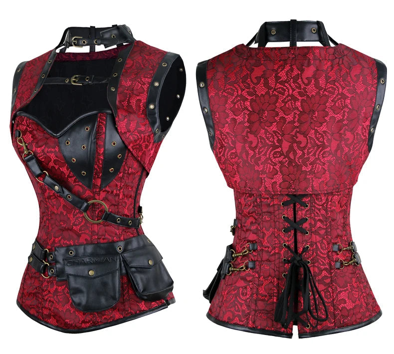 Punk fűző piros hálóval és fekete koponyákkal Lehetosegek megtekintese