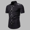 Punk Koszula z Metalowymi Kółkami i Paskami Krótki Rękaw Czarna 3XL