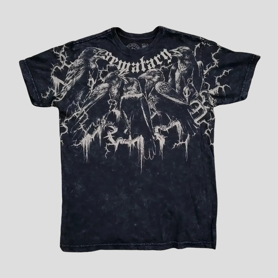 Fekete punk metal póló hollókkal és felirattal