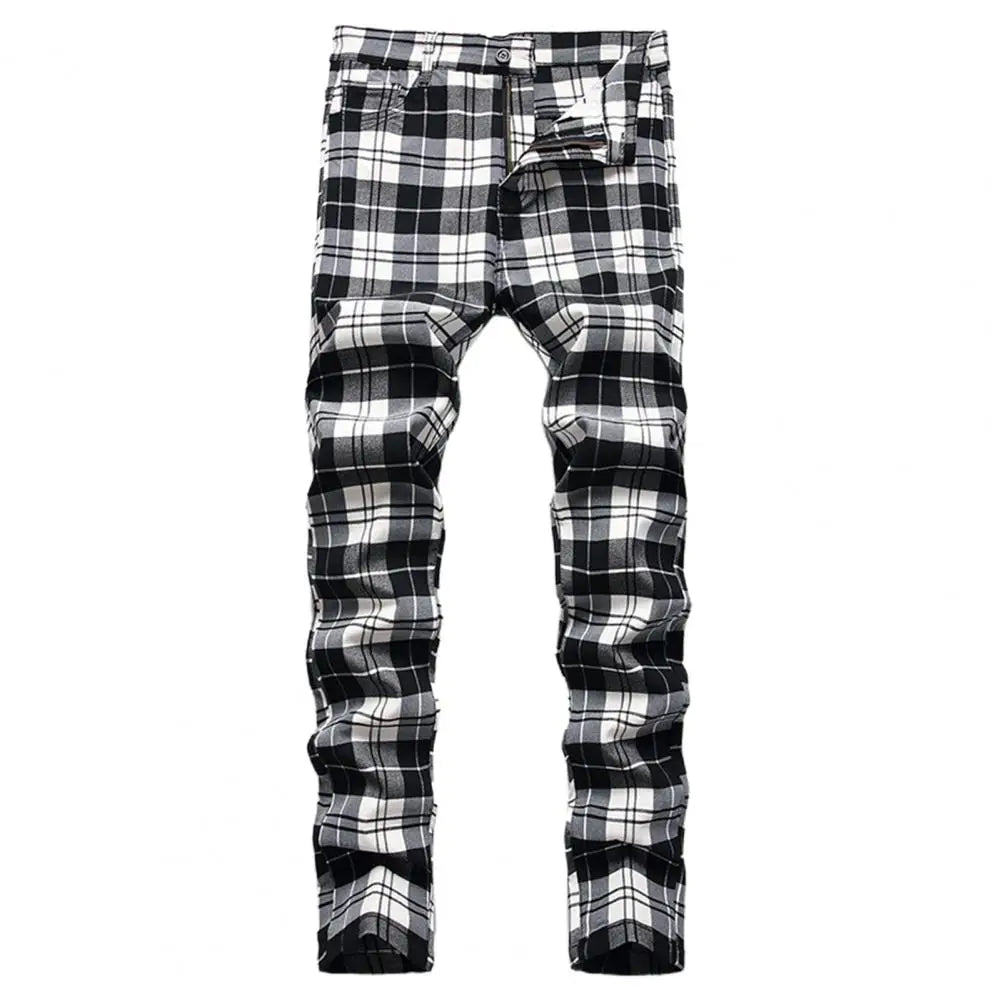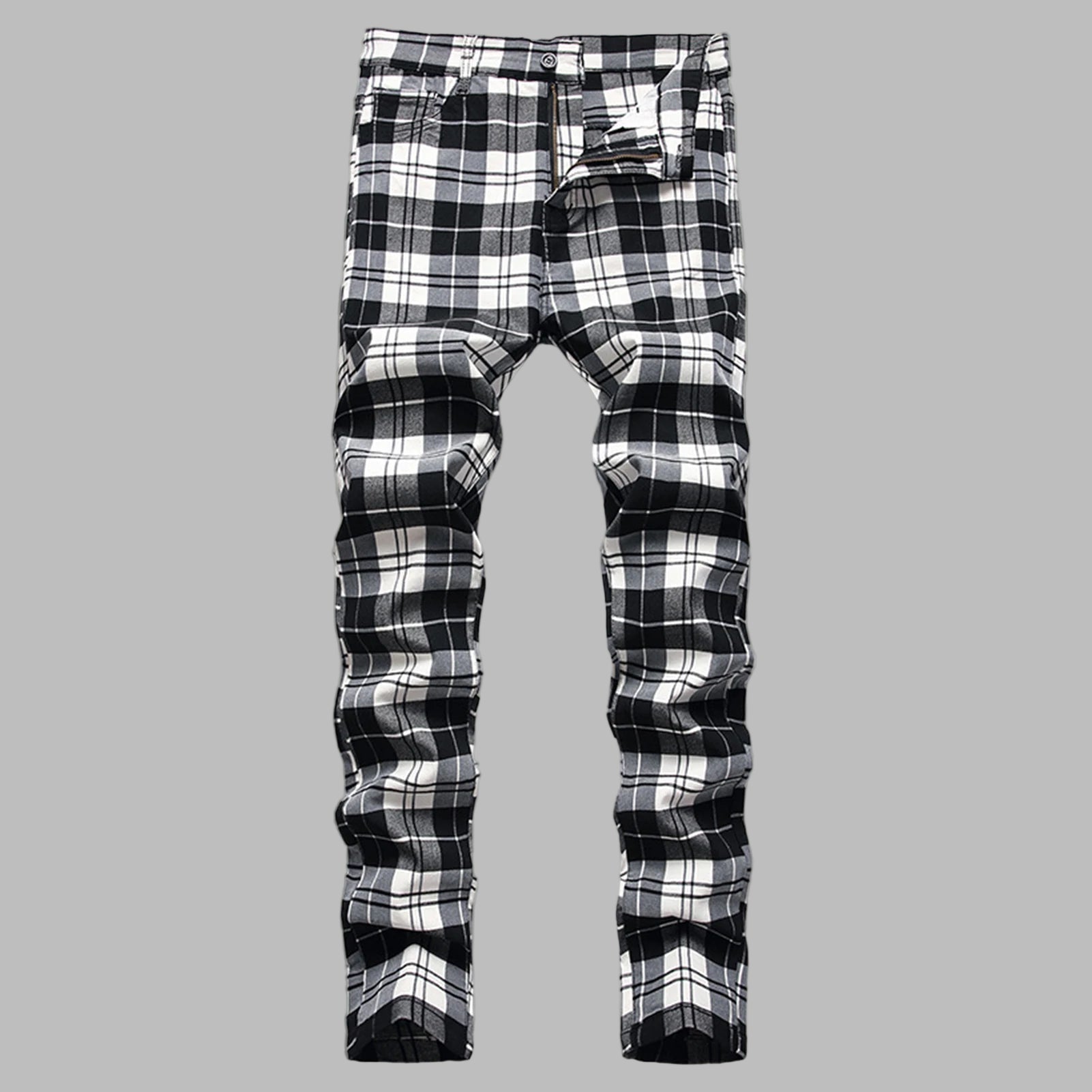 Punk Rock Fekete-fehér Kockás Slim Nadrág
