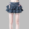 Punk rock rózsaszín szalagokkal díszített fodros farmer miniszoknya