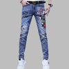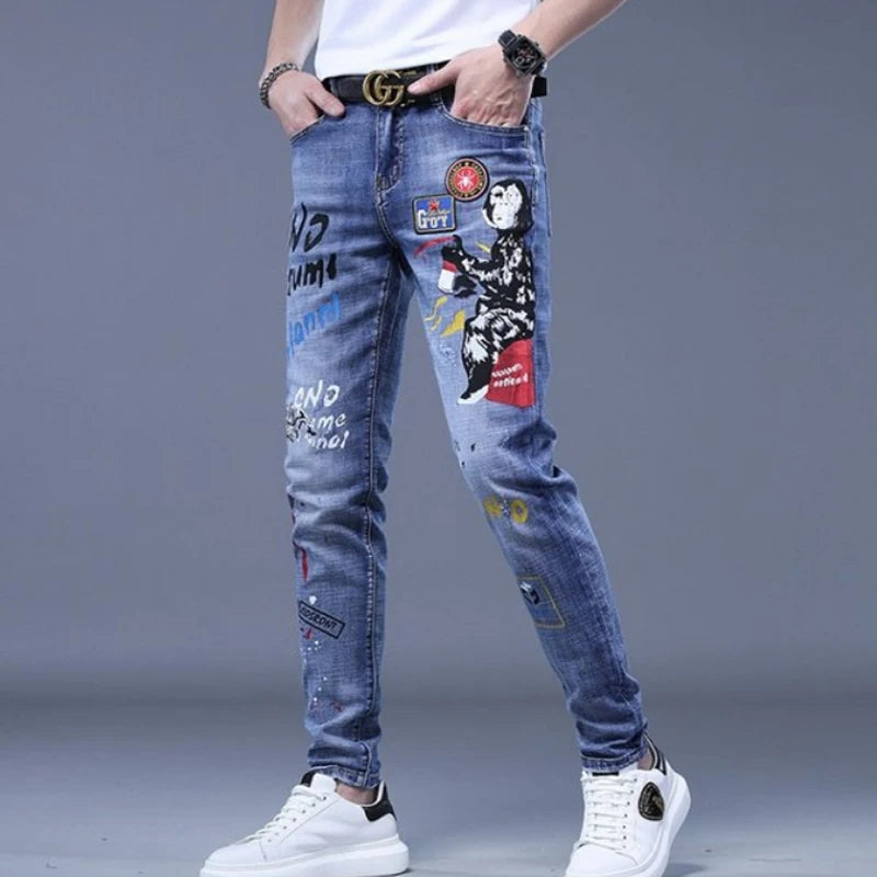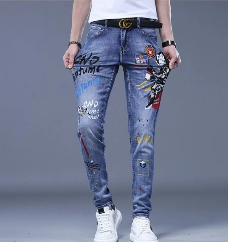 Punk Rock Kék Farmer Foltokkal és Feliratokkal 36