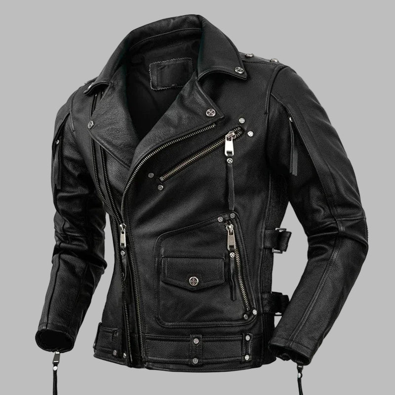 Punk Rock Kurtka Skórzana Czarna Metal Ramoneska 8XL