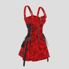 Punk Rock Piros Rózsás Fűző Vállpántokkal