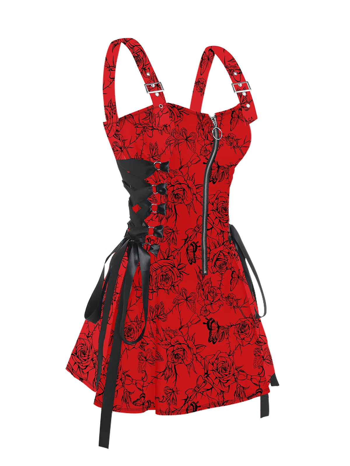Punk Rock Piros Rózsás Fűző Vállpántokkal Lehetosegek megtekintese