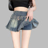Punk stílusú vintage farmer miniszoknya övvel és csatokkal
