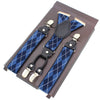 Rock kék rombuszmintás nadrágtartó fekete bőr csatokkal