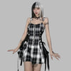 Rock Punk Kockás Pántos Ruha Fűzős Részletekkel