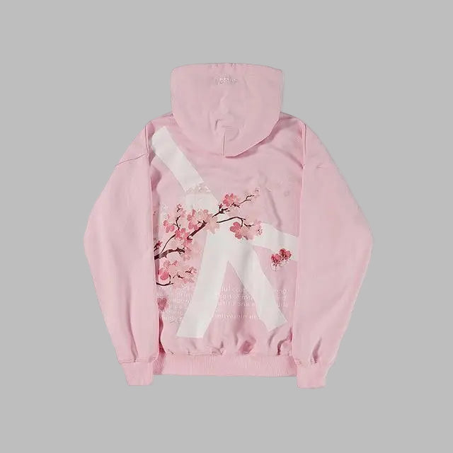 Rózsaszín Jirai Kei pulóver fehér cseresznyevirágokkal XXL