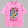 Rózsaszín Oversize Rock Póló Szörfös Csontvázzal