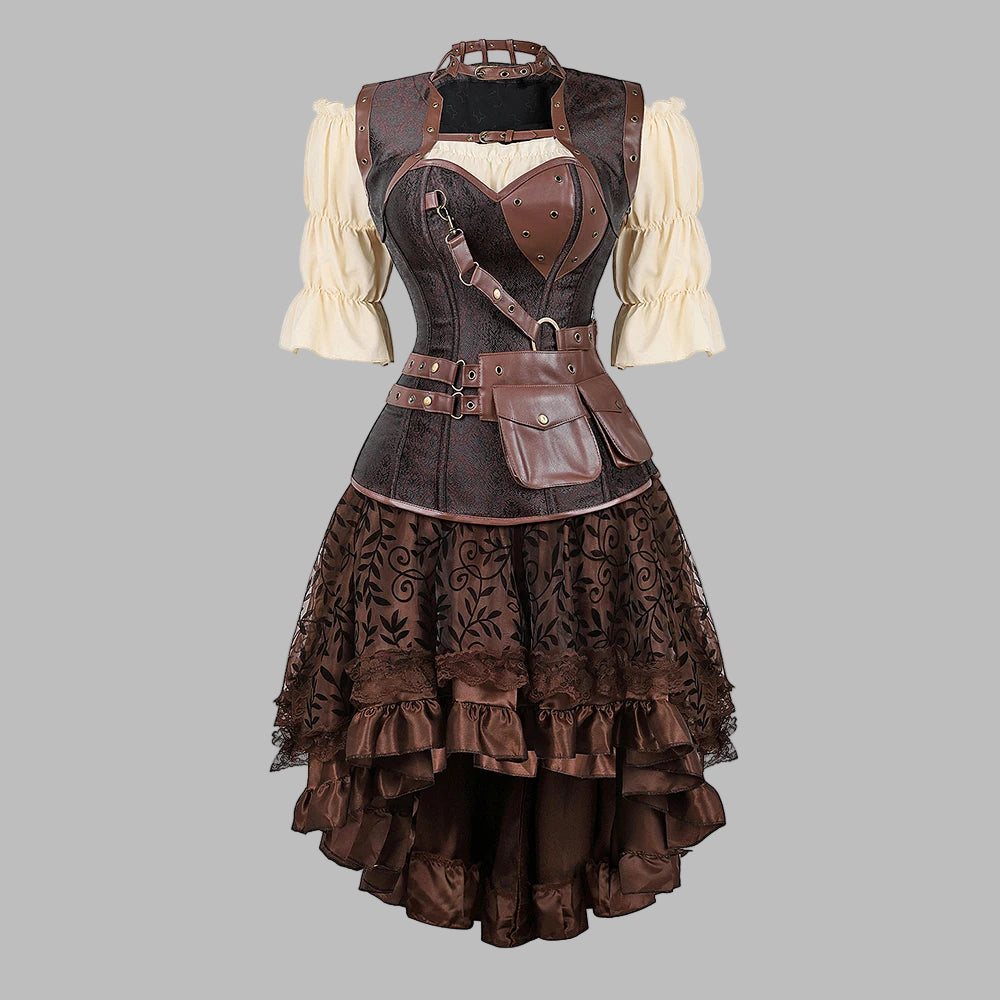 Steampunk barna ruha fűzővel, pántokkal és zsebekkel 6XL
