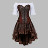 Steampunk Barna Ruha Hímzett Fűzővel és Puffos Ujjakkal 6XL