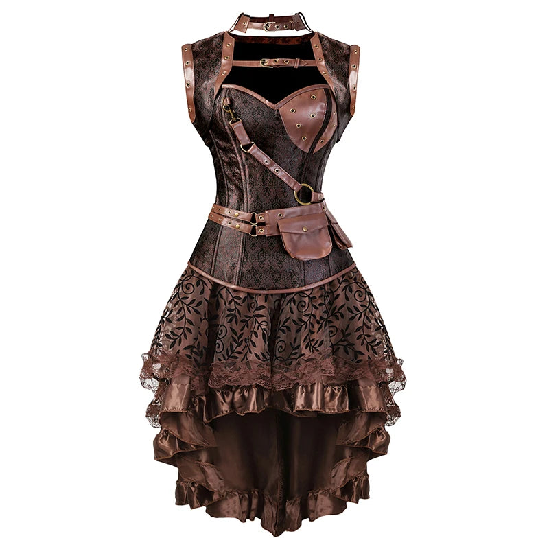 Steampunk ruha barna fűzővel és aszimmetrikus szoknyával 6XL