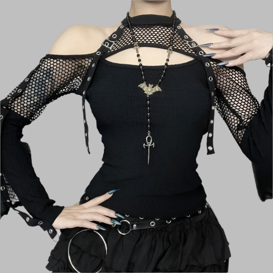 Seksowna Gotycka Koszulka z Czarnej Koronki