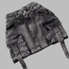 Szürke farmer szoknya punk rock stílusban fém csatokkal és pántokkal