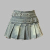 Szürke rakott farmer szoknya fém pántokkal punk rock stílusban