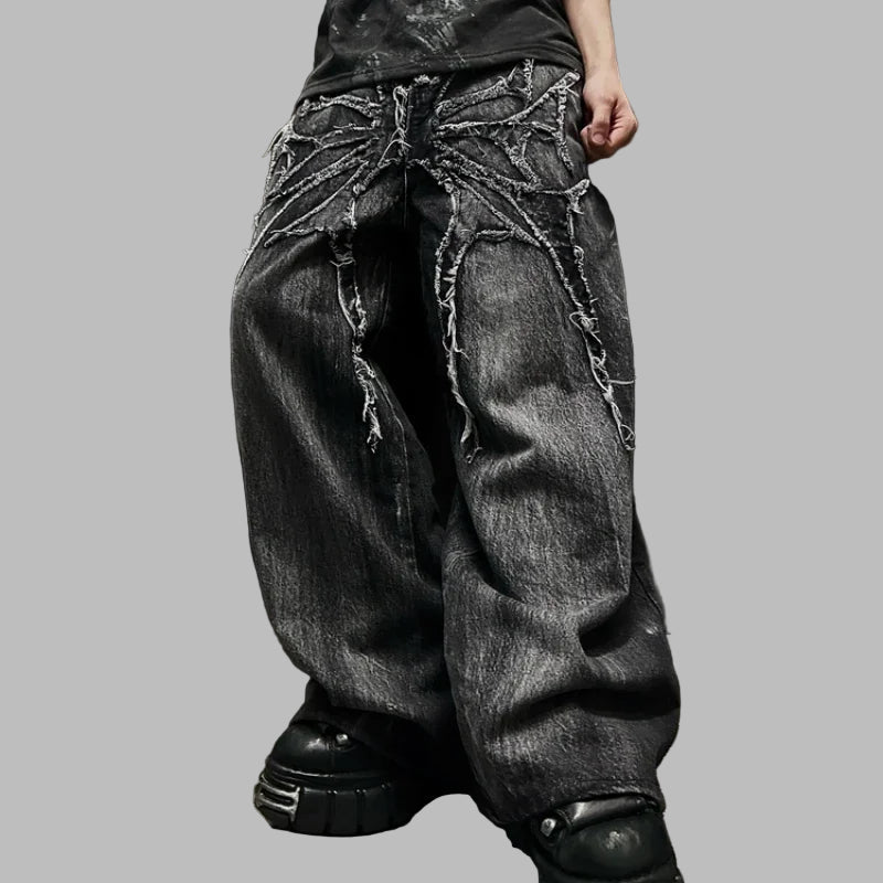 Szürke szakadt láncos baggy punk uniszex farmernadrág Lehetosegek megtekintese