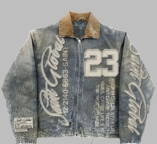 Vintage rock grunge metal feliratos és szegecses farmerdzseki