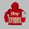 YRN Studios gyerek piros kapucnis heavy metal pulóver